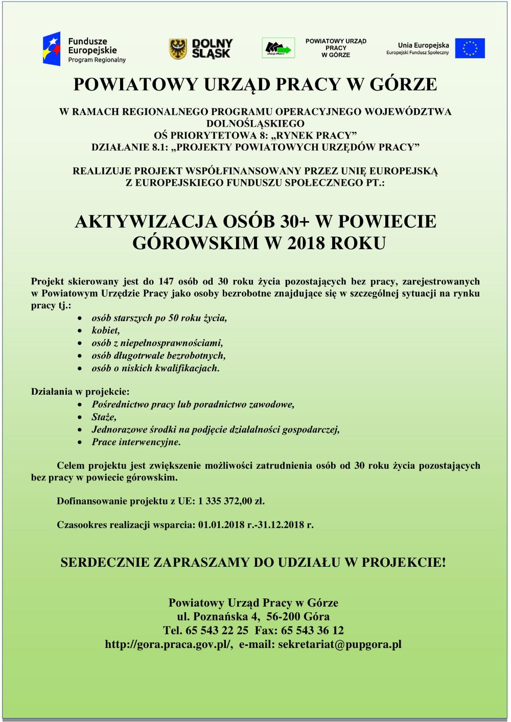 Celem projektu jest zwiększenie możliwości zatrudnienia osób od 30 roku życia pozostających