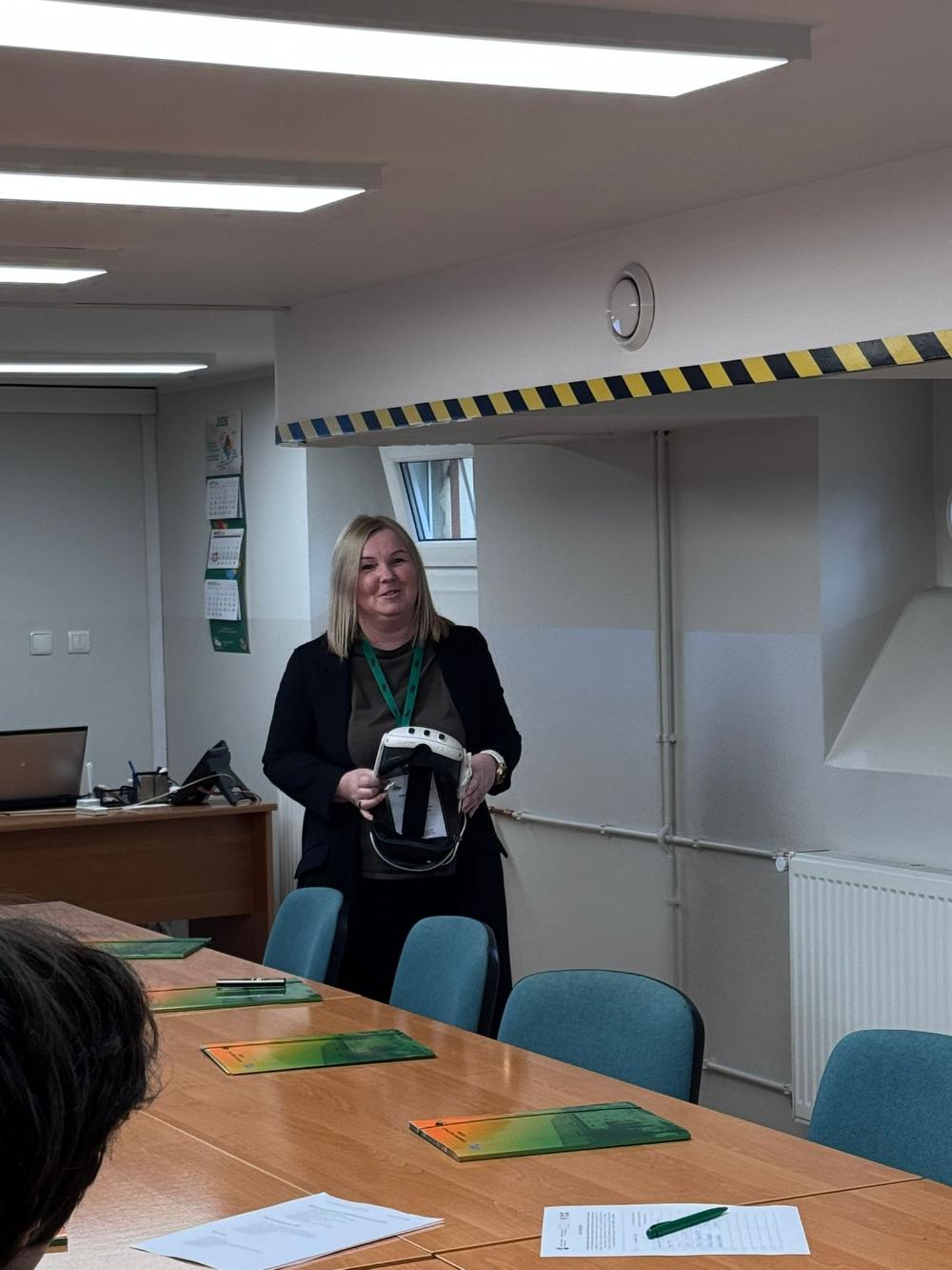 Uczestnicy mieli również możliwość zapoznania się z technologią VR. Zaprezentowano okulary wirtualnej rzeczywistości, które umożliwiają zdobycie praktycznej wiedzy o rynku pracy oraz poznanie specyfiki wybranych zawodów. Dodatkowo omówiono zasady bezpiecznego korzystania z okularów VR.